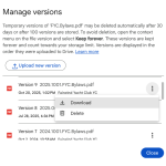 Click the three dot menu to the right of the filename. Click File Information->Manager Versions